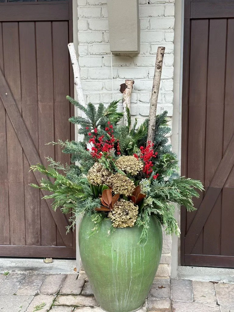 Winter Containers Bring warmth and life to the coldest season with curated winter pots! Fresh evergreens, rich textures, and festive accents create a welcoming touch that lasts all winter long. Winter Container